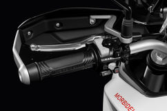 Pantalla a color con proyección de navegación para smartphone. Incluye Bluetooth, USB-C, interruptores retroiluminados y 1 año de acceso gratuito a Morbidelli Connect. Botón SOS, alertas por vibración/movimiento, seguimiento en tiempo real y apagado remoto del motor, todo ello accesible a través de la aplicación Morbidelli Connect.